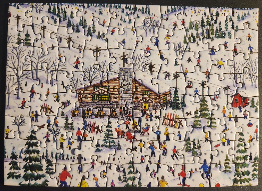 The scenes in this advent calendar are so nicely varied from classic Christmas scenes to more standard outdoor winter scenes. How realistic this is, I don’t know as I’ve never been skiing but in terms of thinking about the classic ski lodge and surroundings, it seems on par. It doesn’t seem like anyone is skiing though. They all are running towards the lodge. That’s going to be a really full lodge.